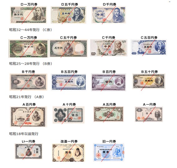 銀行に持っていけば、現在発行されているお金に交換してもらえます。